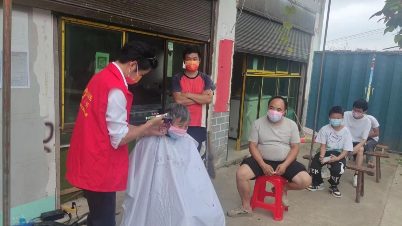 9月20日,修文縣谷堡鎮(zhèn)天生橋村組織新時(shí)代文明實(shí)踐站志愿者免費(fèi)為村中防疫工作人員、老人小孩理發(fā)。??現(xiàn)場(chǎng),理發(fā)師用一把椅子、一塊布、一把剪子和梳子便開起臨時(shí)“理發(fā)店”,聽到消息前來剪發(fā)的村民們都戴好口罩,自覺保持1米距離排隊(duì)等候,理發(fā)師耐心詢問了解每一位“…